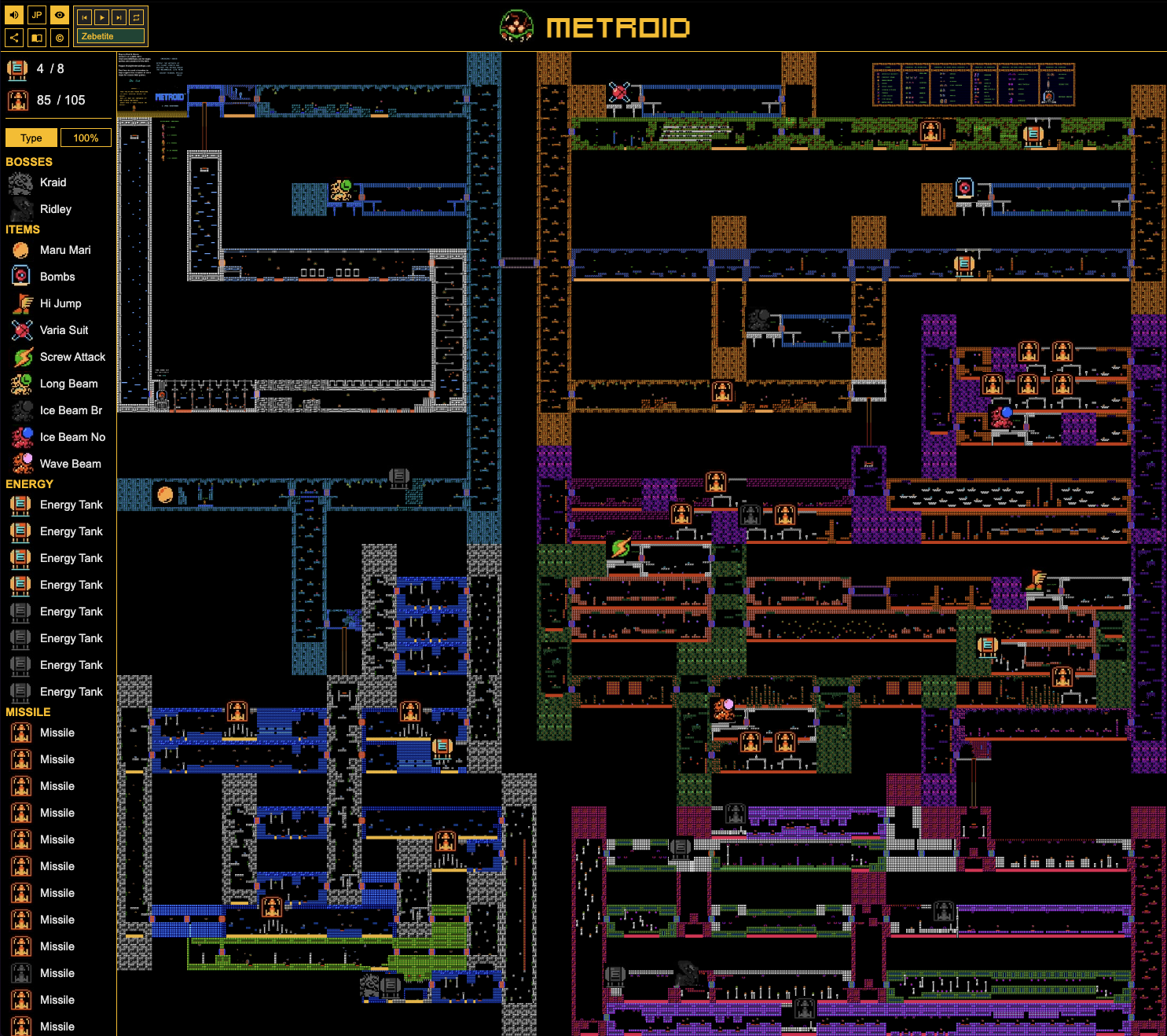A web-based tool to help track your progress through the original Metroid (NES) game with an interactive numbered map.