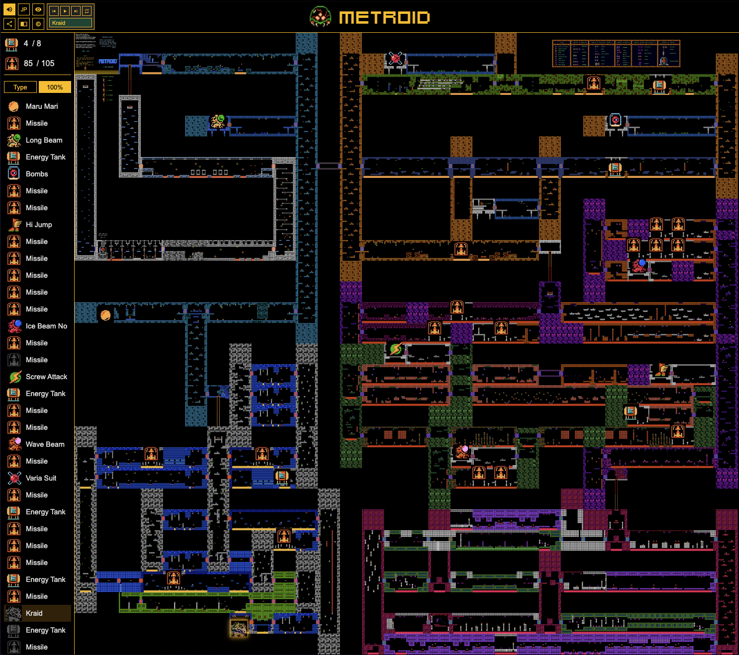 A web-based tool to help track your progress through the original Metroid (NES) game with an interactive numbered map.